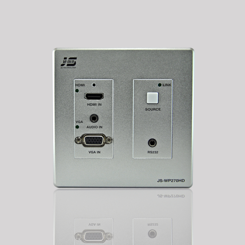 JS-WP300HD墻面接線盒是一款帶高清轉(zhuǎn)換及長距離傳輸?shù)男畔⒑校孢B接的 VGA+Audio、HDMI 信號(hào)可通過單根 CAT5、5e 及 6 類網(wǎng)線輸出高清視頻信號(hào)、音頻信號(hào)、傳輸距離 100米,安裝布線便利;?采用了全數(shù)字式零壓縮技術(shù),實(shí)現(xiàn)了視頻圖像點(diǎn)對(duì)點(diǎn)以及音頻的完美傳輸。最高支持 1920x1080P 60Hz 信號(hào);支持 HDCP 解碼(選配),可接藍(lán)光播放器,具有高可靠