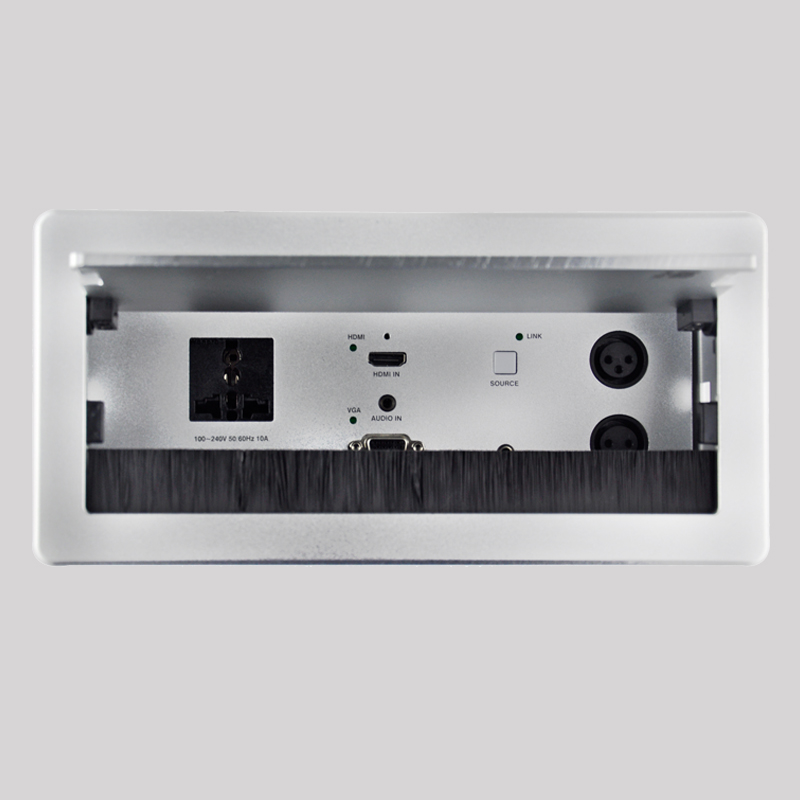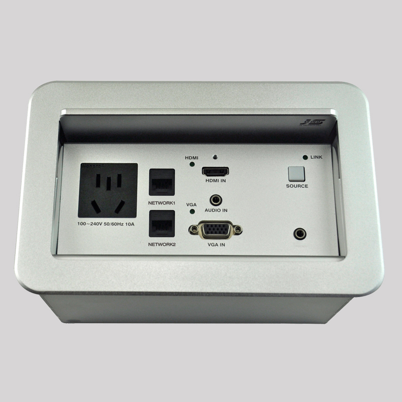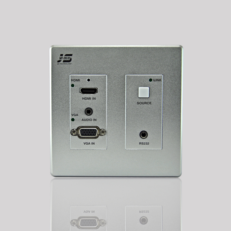 JS-U100HD可藏式接線盒是一款帶高清轉(zhuǎn)換及長距離傳輸?shù)倪m合桌面下吊裝式接線盒,它前端連接的 VGA音頻、HDMI信號(hào)可通過單根類網(wǎng)線輸出高清視頻信號(hào)、音頻信號(hào)、傳輸距離100M,安裝布線便利;采用了全數(shù)字式零壓縮技術(shù),實(shí)現(xiàn)了視頻圖像點(diǎn)對(duì)點(diǎn)以及音頻的完美傳輸。最高支持1920x1080P 60Hz信號(hào);支持HDCP解碼(選配),可接藍(lán)光播放器,具有高可靠性和卓越的高分辨率圖像性能。