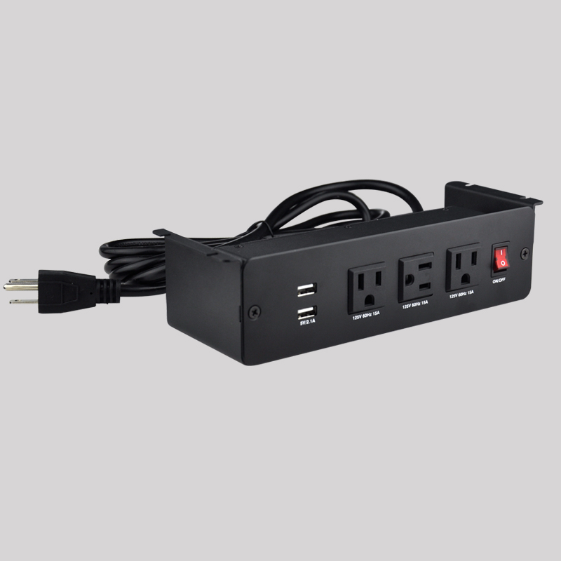 This recessed power strip is made of high grade aluminum-magnesium alloy, it can be mounted on furniture. provide people power source within reach. No more crawling under the desk to find power strips