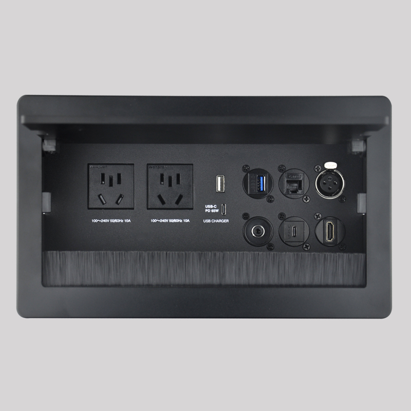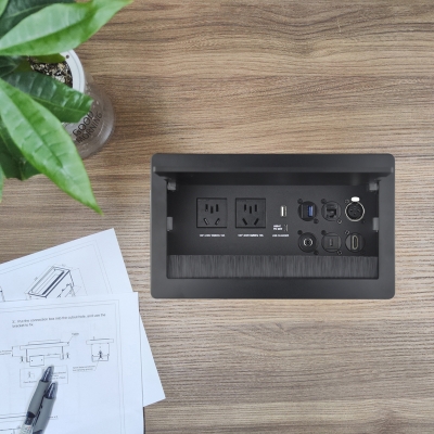 JS-Z300+ 系列可藏式接線盒提供了一個(gè)整潔、緊湊、簡單的連接解決方案;采用掀蓋式設(shè)計(jì),隱藏安裝,使面板與桌面保持齊平,質(zhì)優(yōu)且價(jià)廉,供簡易辦公連接使用。